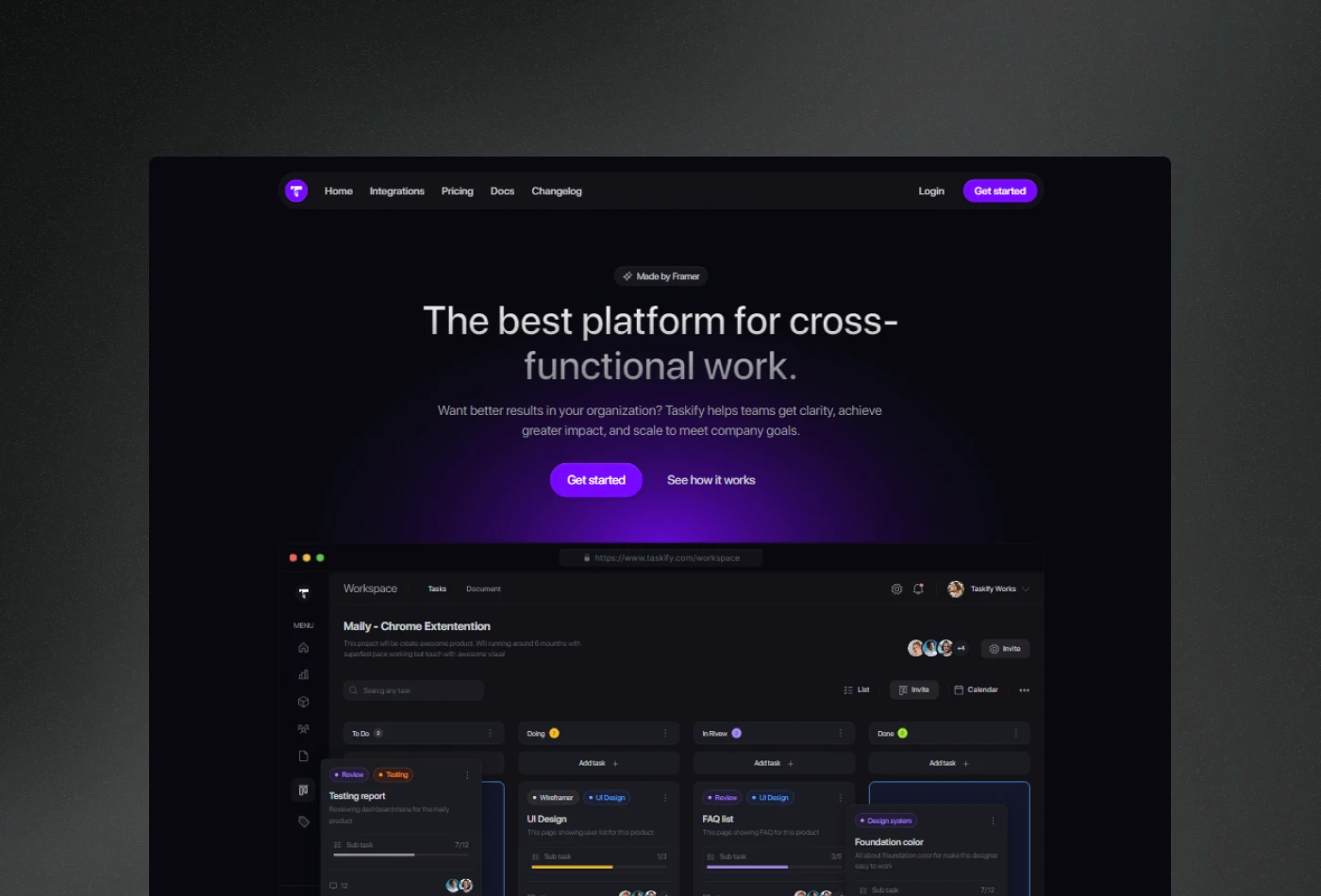 Fully Customizable: Tailor the template to your project's specific needs. The Taskify Framer Template offers a high degree of customization, allowing you to make it uniquely yours.